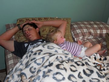 Jake went bear hunting at 0400 and got home at 1230. He wasn't even home five minutes before he and Brilee were asleep. They took a good four hour nap together.